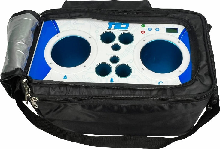 The DPBS OLED Heater is equipped with two housings for bags with capacity of 1 liter and in the middle a block with a capacity for 4 tubes of 50 ml and 2 tubes of 15 ml. It already comes from factory calibrated and adjusted to 37.0 °C. Item comes with a soft sided transport case, which makes them more practical and discreet for work in the field.